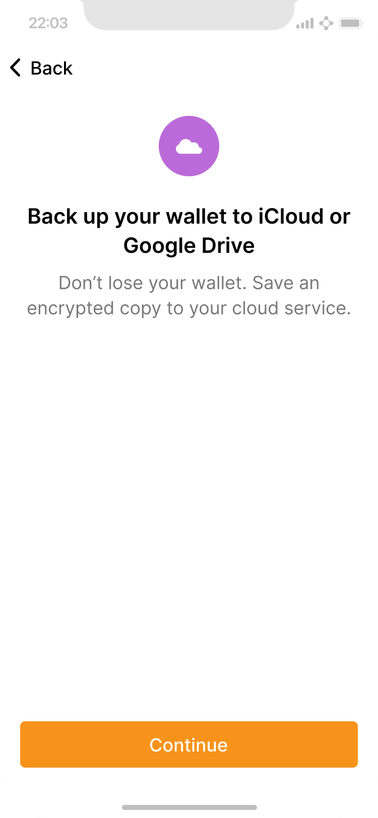 Below is what this wallet’s automatic cloud backup user interface looks like.