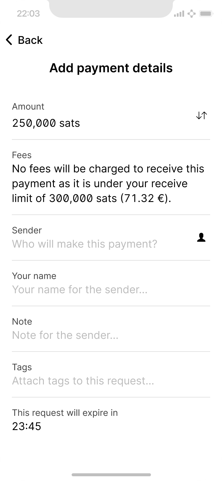 Moreover, users have the option to skip entering an amount. This flexibility caters to situations where the user might want the sender to determine the amount. Zero-amount requests also reduce the exposure of both parties to price volatility. This is because the bitcoin price in fiat terms could fluctuate between the time of the request and the actual sending of payment.