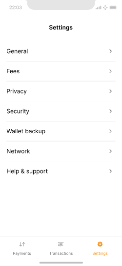 As you probably noticed in previous pages, various settings can be configured contextually throughout the app experience (like hiding and unhiding the balance). All these options, and a few extra ones, are bundled in the settings area.
