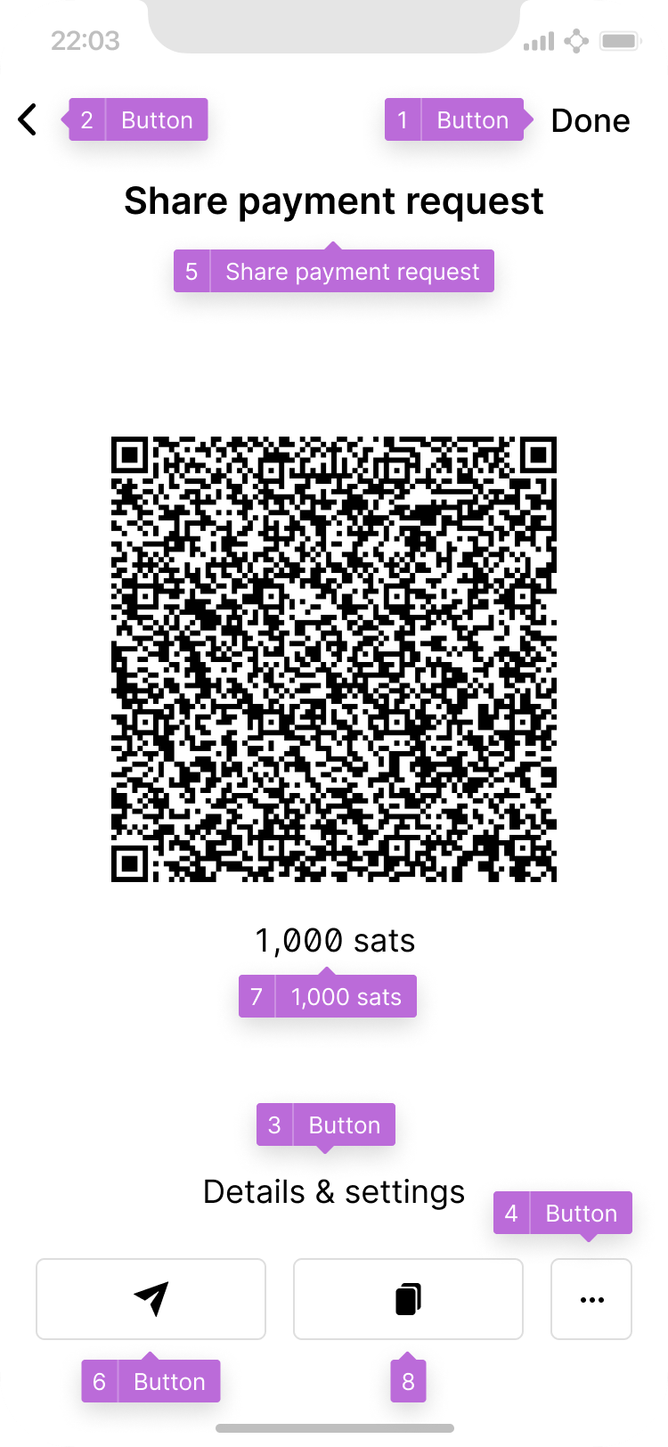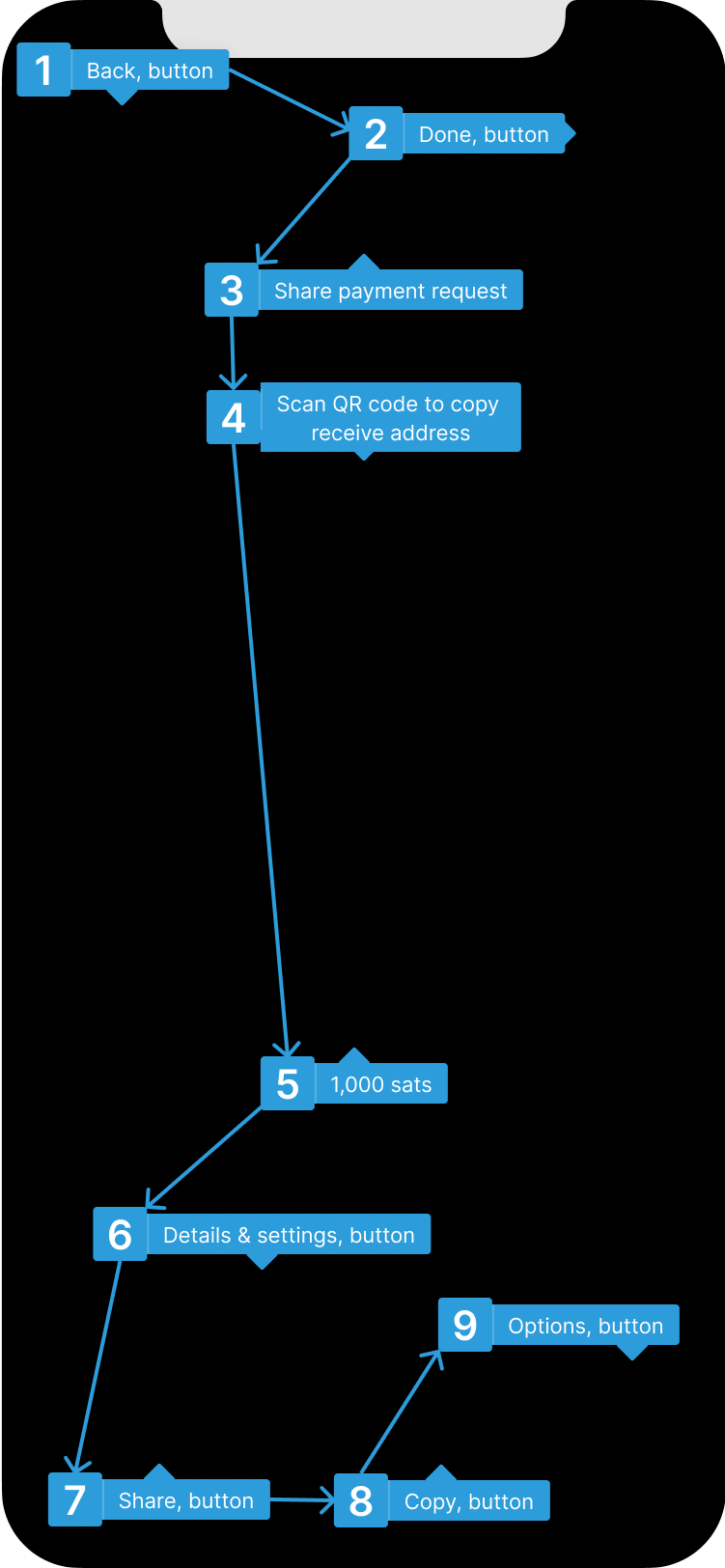 It is impossible to know what a button does when it is only labelled as “button”, and not with its function. Testing has shown that QR codes are often not selectable at all, which makes them invisible to users reliant on screen readers. A good solution is a label such as “QR code to copy the receive address”.