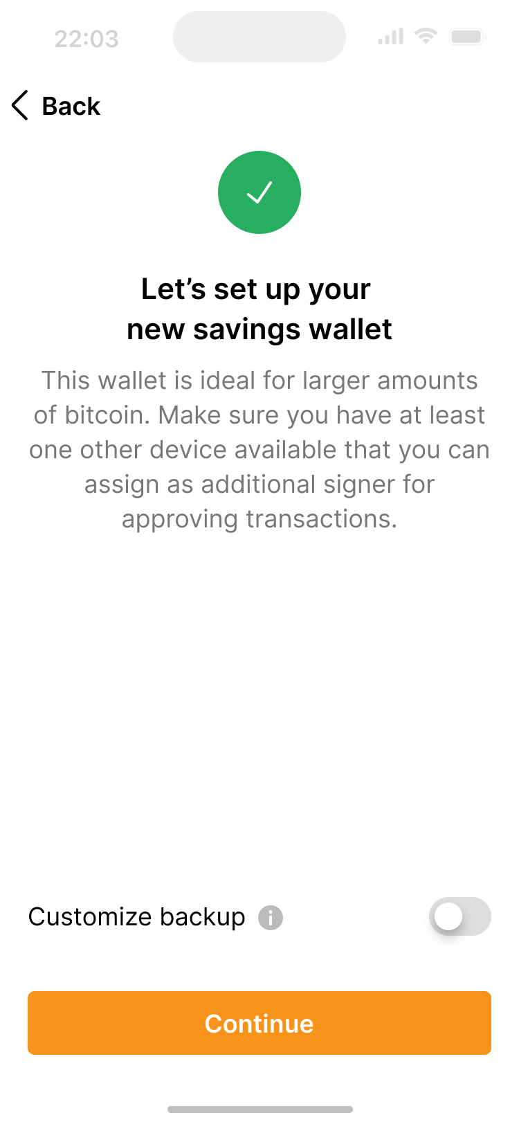 Whichever types of wallets you decide to include in your product, try to guide users towards ones that best fit their use case. Below is an example of structuring a series of questions that result in a recommended wallet configuration. Users still have the option to adjust before committing.
