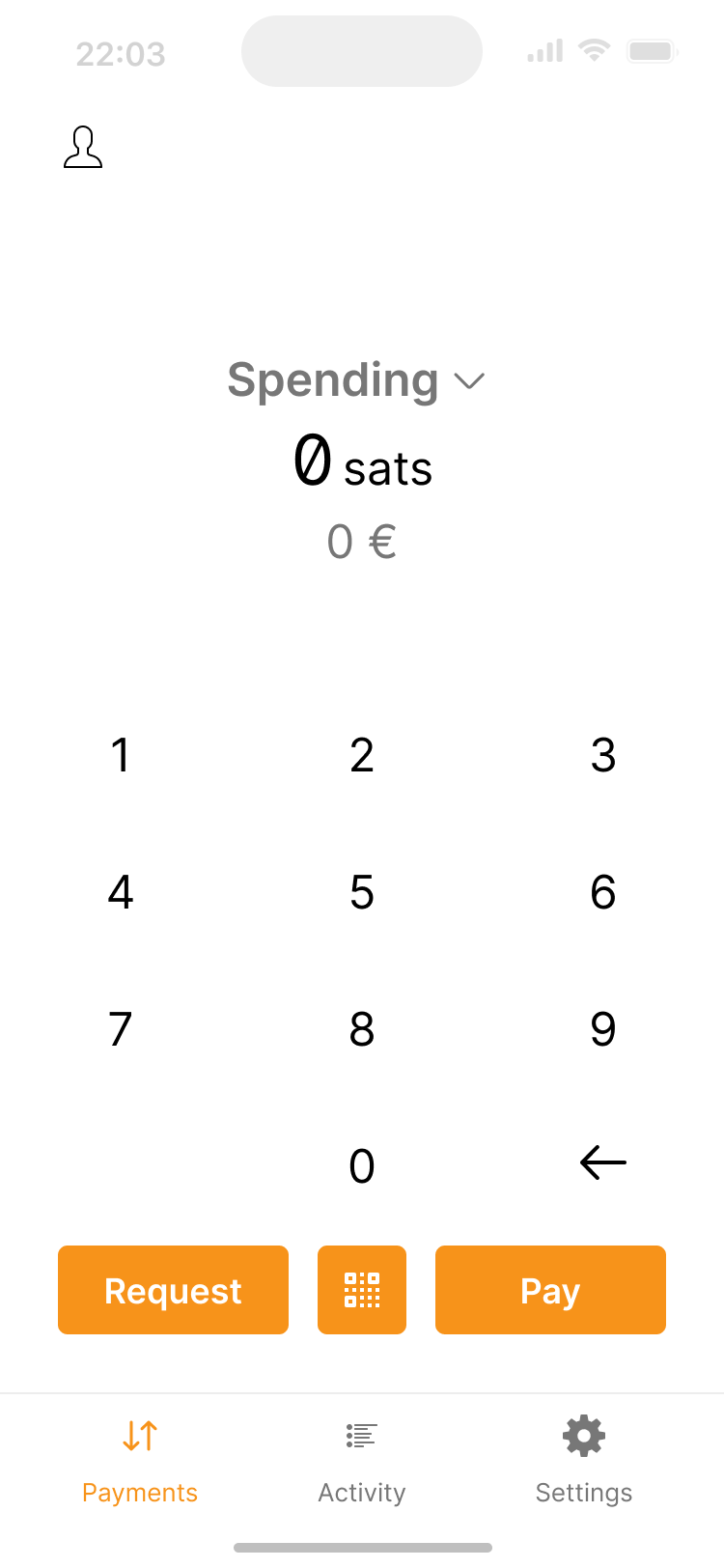 Compared to the daily spending wallet, the only addition to the payments screen is an indicator for the currently selected wallet, right above the amount input. This indicator also functions as a button to expand the wallet switcher modal.
